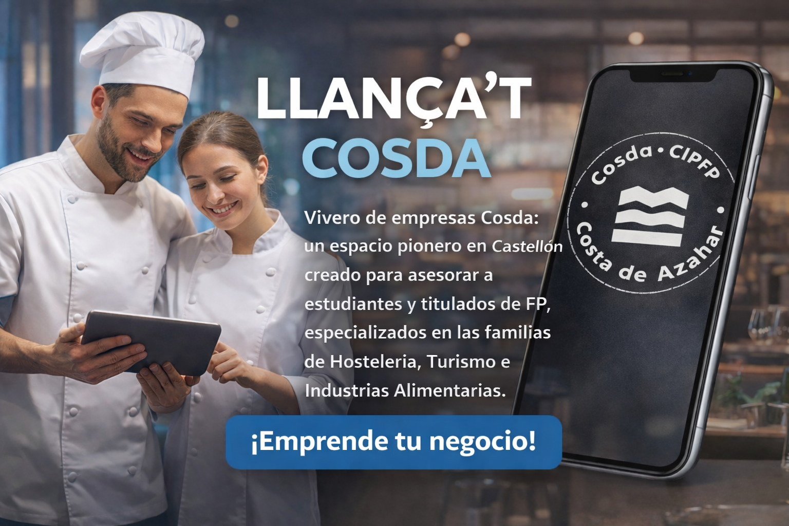 ¿Tienes una idea revolucionaria pero no sabes cómo materializarla? En el CIPFP Costa de Azahar te ofrecemos el impulso definitivo para que tu proyecto empresarial pase del papel a la realidad. Presentamos nuestro Vivero de Empresas, un espacio pionero en Castellón creado exclusivamente para estudiantes y titulados de Hostelería, Turismo e Industrias Alimentarias.